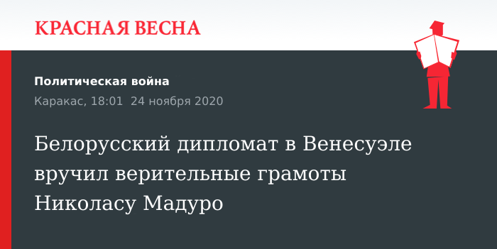 Согласно сообщению, 23 ноября белорусский дипломат вручил верительные грамоты президенту Венесуэлы.