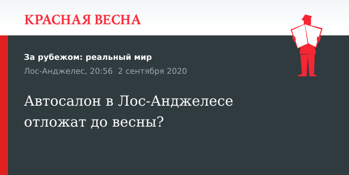 Автосалон в Лос-Анджелесе, который запланирован за вторую половину ноября, могут перенести на конец мая 2021 года из-за коронавируса организаторы мероприятия, 1 сентября сообщает издание Automotive News со ссылкой на собственный источник.