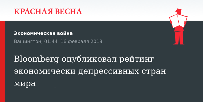 Рейтинг экономической депрессивности стран в мире составили аналитики Bloomberg, 15 февраля сообщает агентство.