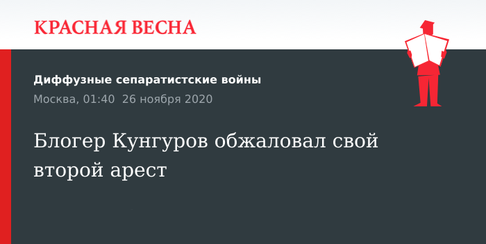 Отметим, это уже второе уголовное преследование Кунгурова. В 2016 году Тюменский областной суд обвинил его в оправдании терроризма за публикацию в «Живом журнале» поста с критикой операции российских войск в Сирии. Блогера осудили за «Публичные призывы или оправдание теракта» и приговорили к 2,5 годам колонии-поселения. После отбытия наказания Кунгуров переехал на Украину.