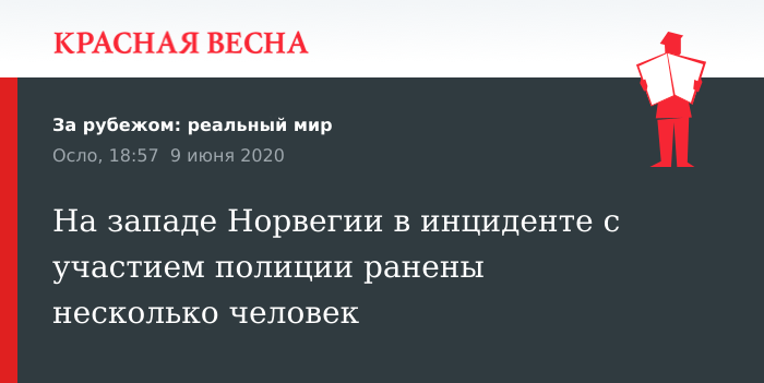 Несколько человек получили ранения в результате инцидента с участием вооруженной полиции в норвежской коммуне Саннес, распложенной на западе страны, сообщает 9 июня Fædrelandsvennen.