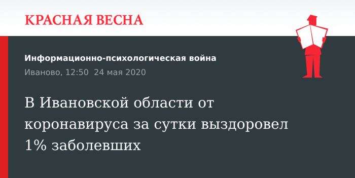 Количество выздоровевших от новой коронавирусной инфекции в Ивановской области увеличилось на 1%, 24 сообщает федеральный сайт coronavirus-monitor.ru.