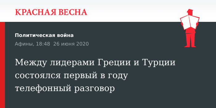 Вопросы туризма и коронавируса стали основными темами, которые обсудили премьер-министр Греции Кириакос Мицотакис и президент Турции Реджеп Эрдоган 26 июня во время первого за несколько месяцев телефонного разговора, сообщает греческий телеканал Skai.