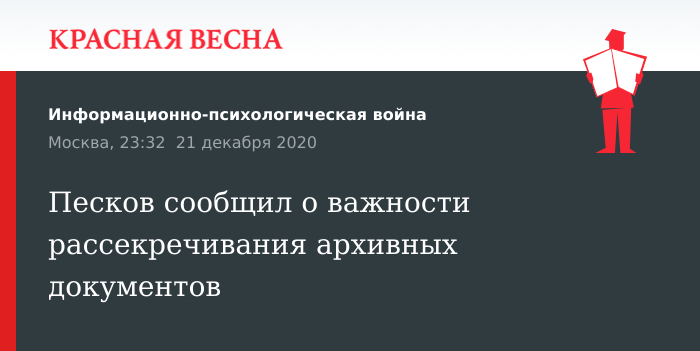 Ежегодное рассекречивание архивных документов является важной процедурой, 20 декабря заявил пресс-секретарь президента РФ Дмитрий Песков.