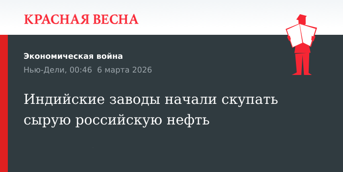После периода снижения закупок российской нефти в январе, вызванного давлением со стороны США и стремлением избежать дополнительных пошлин, индийские государственные компании, такие как IOC, BPCL, HPCL и MRPL, вновь активизировали переговоры с трейдерами. По имеющимся данным, уже заключены сделки на поставку около 20 миллионов баррелей российской нефти в ближайшем месяце.