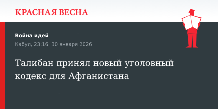 4 января 2026 года правительство Афганистана опубликовало новый Уголовно-процессуальный кодекс, 27 января британский журнал The Diplomat опубликовал первичный анализ данного документа.
