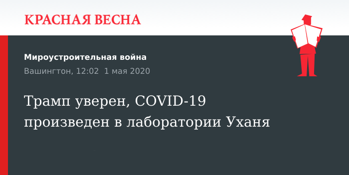 Президент США отказался комментировать, заявление разведки США о естественном происхождении Covid-19. На вопрос журналиста, есть ли у вас «полная уверенность» в том, что коронавирус возник в лаборатории института вирусологии Уханя, Трамп ответил утвердительно. Когда журналисты спросили, на каком основании он выносит такое решение, президент ответил, — «Я не могу вам этого сказать. Мне не разрешено вам об этом говорить».