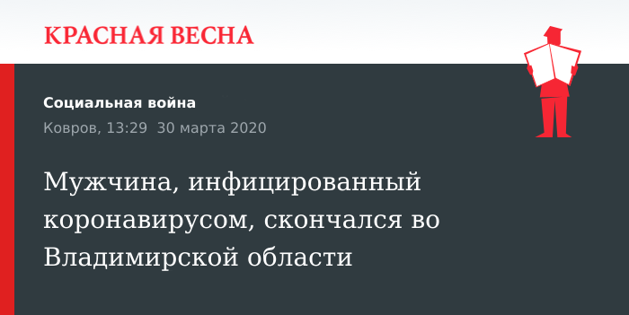 Пациент, зараженный коронавирусом, умер во Владимирской области, сообщили 30 марта в управлении Роспотребнадзора по Владимирской области.