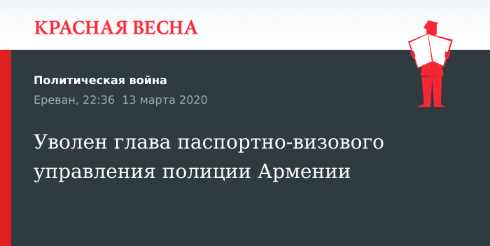 Уволен глава паспортно-визового управления полиции Армении