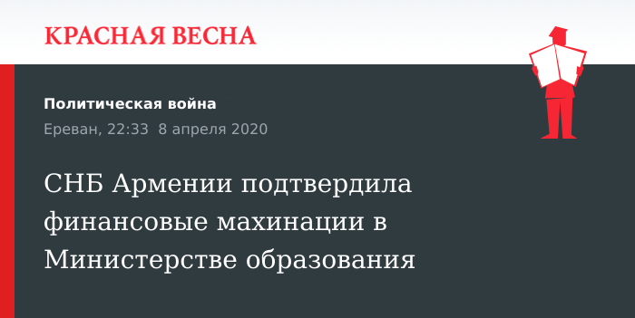 СНБ Армении подтвердила финансовые махинации в Министерстве образования