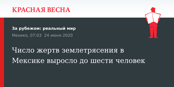 Шесть человек погибло в результате подземных толчков на юге Мексики. Об этом сообщило Управление гражданской защиты мексиканского штата Оахака 24 июня на своей странице в Twitter.