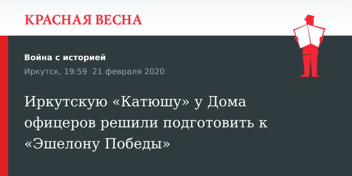 «Катюшу», стоявшую в качестве экспоната у Дома офицеров в Иркутске, увезли сотрудники военкомата 20 февраля, сообщает интернет-портал IRK.ru.