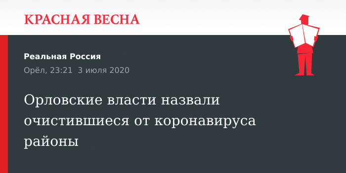 Чистыми от COVID-19 объявил три района Орловской области глава регионального департамента здравоохранения Иван Залогин на онлайн-брифинге, 2 июля сообщает пресс-служба областного правительства.