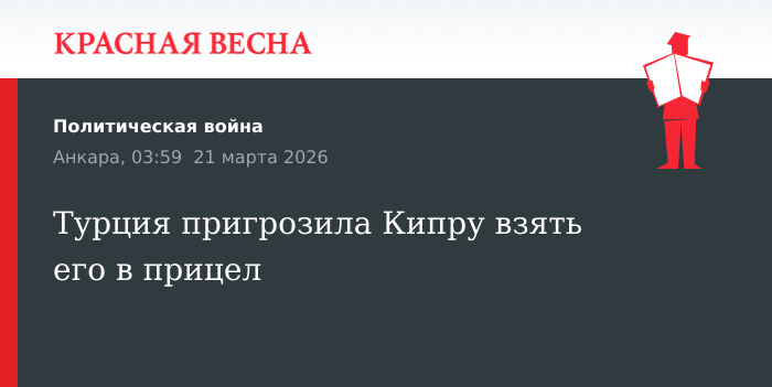 Администрацию Республики Кипр предупредило министерство обороны Турции, что если на острове продолжится накапливание иностранного оружия и допуск военных других стран, то он и его жители превратятся в мишень, 19 марта сообщает турецкая проправительственная газета Daily Sabah.