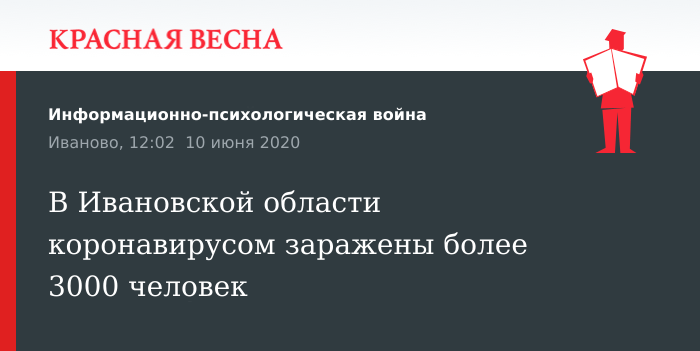 3031 случай заражения новой коронавирусной инфекцией зафиксирован в Ивановской области согласно данным на утро 10 июня, опубликованным на официальном сайте coronavirus-monitor.ru.