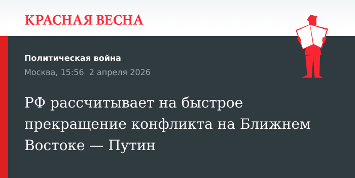 Россия рассчитывает на скорейшее завершение конфликта на Ближнем Востоке, заявил Владимир Путин 2 апреля на встрече с главой МИД Египта Бадром Абдель Аты.