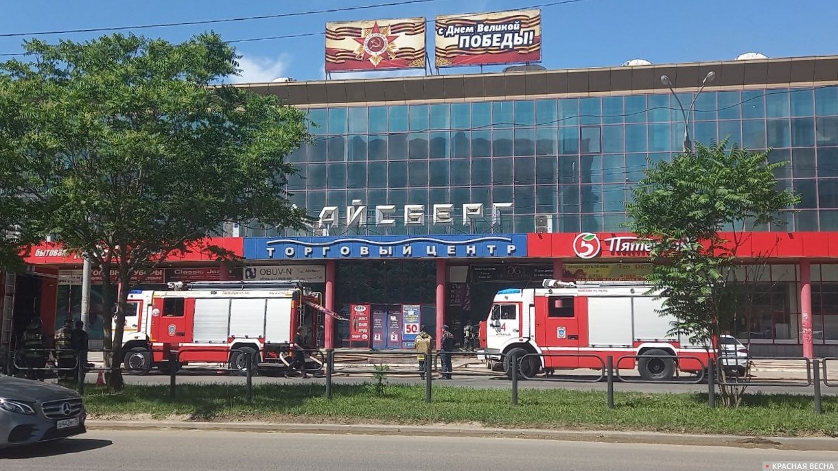 «В 8.34 (7.34 мск) поступило сообщение о загорании в отделе на первом этаже ТЦ „Айсберг“ по адресу улица Победы, 53», — сообщил он.