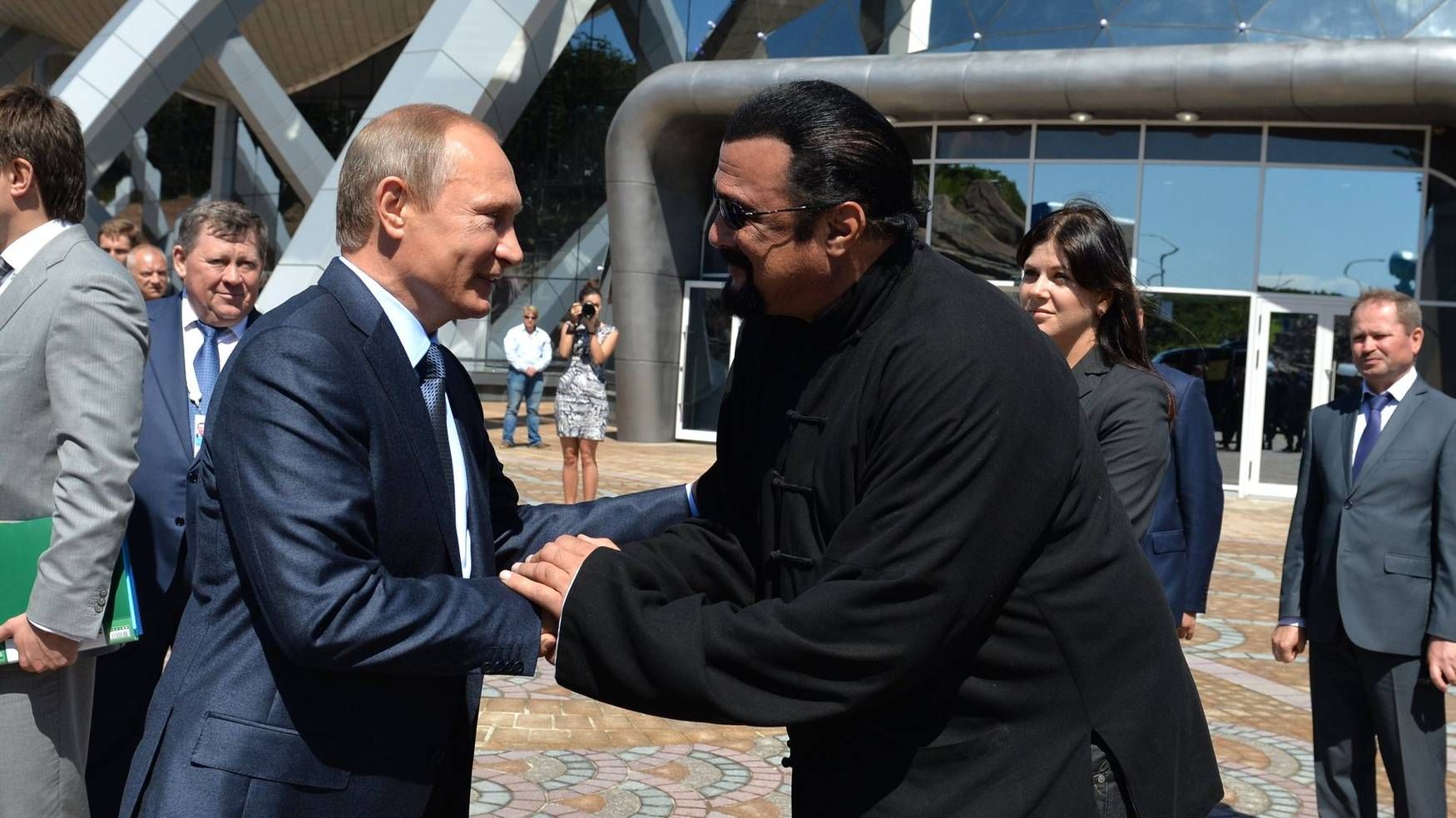 «Я в восторге, рад здесь быть», — сказал Сигал. Актера сопровождает его супруга.