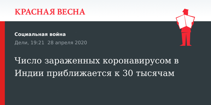 Число зараженных коронавирусом в Индии приближается к 30 тысячам