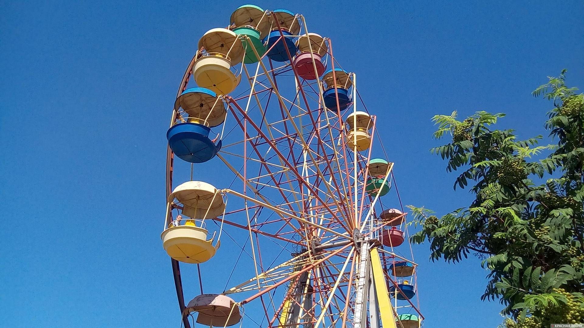 Инцидент произошел утром. Восемь детей находились в четырех кабинах небольшого колеса обозрения, которое после поломки вала остановилось и упало.