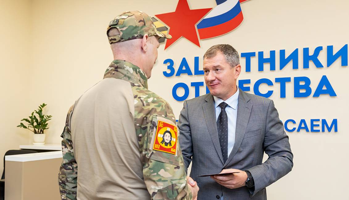 В ходе мероприятия, первый заместитель председателя правительства области Сергей Елисеев вручил ветеранские удостоверения пяти жителям региона, принимавшим участие в боевых действиях в ходе СВО.