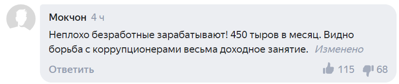 Пользователь Мокчон поиронизировал над доходностью борьбы с коррупционерами.