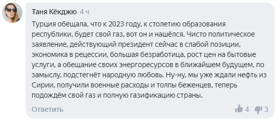 Пользователи Сети считают, что заявление Эрдогана про обнаруженный газ было сделано для решения политических задач.