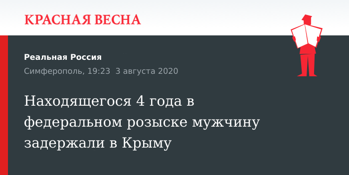 Скрывавшийся 4 года от правосудия мужчина 1987 года рождения был задержан пограничниками при попытке въехать в Крым. Сотрудники Пограничного управления ФСБ России по Республике Крым установили, что следовавший с Украины мужчина находится в федеральном розыске уже четыре года. Сообщается, что беглец был объявлен в розыск из-за незаконного хранения наркотиков.