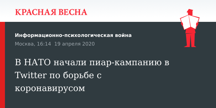 Официальные аккаунты НАТО начали распространять сообщения с хэштегом #StrongerTogether, в которых говорится о роли НАТО в борьбе с коронавирусом. Десятки подобных сообщений были опубликованы начиная с 16 апреля в Twitter.