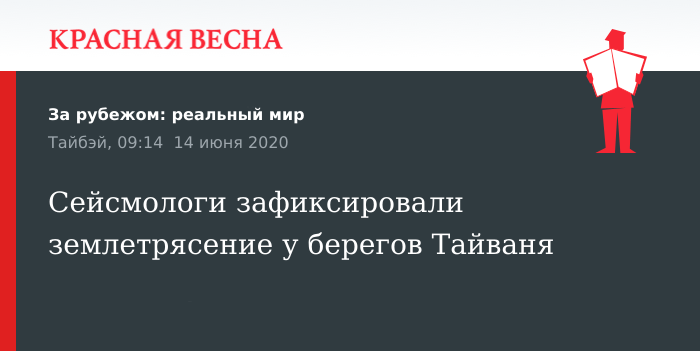 Сейсмологи зафиксировали землетрясение у берегов Тайваня