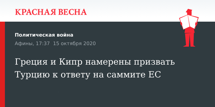 Греция и Кипр намерены призвать Турцию к ответу на саммите ЕС