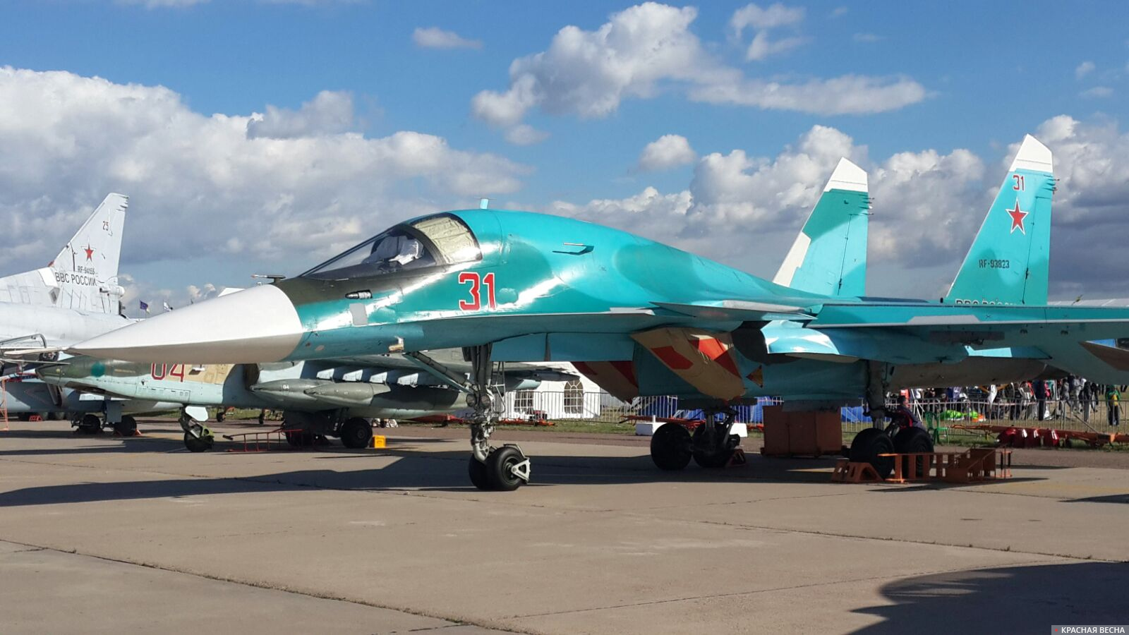 Напомним, Су-34 — российский многофункциональный истребитель-бомбардировщик. Самолет предназначен для нанесения ударов по наземным целям противника в условиях сильного противодействия. Позволяет осуществлять выполнение основных боевых задач без сопровождения истребителями прикрытия. На его борту находится управляемое вооружение класса «воздух-поверхность» и «воздух-воздух». Дальность полета — до 4 000 км, максимальная скорость — до 1 900 км/ч, боевая нагрузка — до восьми тонн.