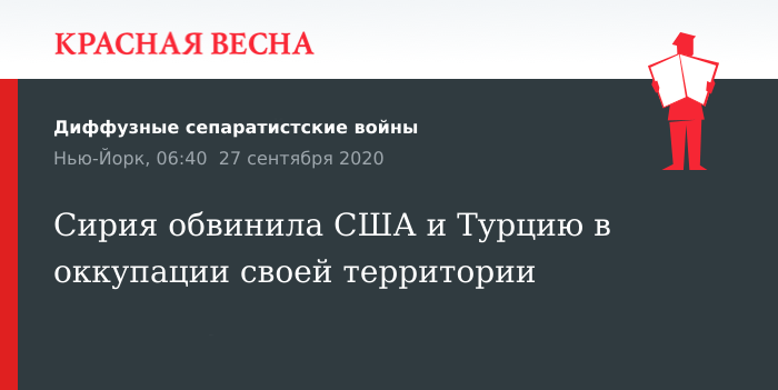 Вооруженные силы США и Турции оккупировали часть территории Сирии, заявил глава МИД Сирии Валид Муаллем 26 сентября в видеообращении в рамках 75-й сессии Генассамблеи ООН.