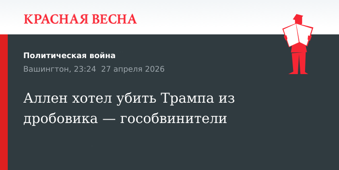 Обвиняемый в покушении на президента США Дональда Трампа Коул Томас Аллен намеревался застрелить главу государства из дробовика, заявили государственные обвинители 27 апреля на слушании в суде Вашингтона, передает РИА Новости.