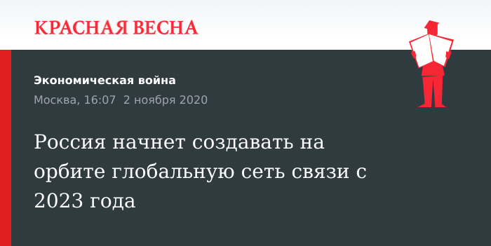 Россия начнет создавать на орбите глобальную сеть связи с 2023 года