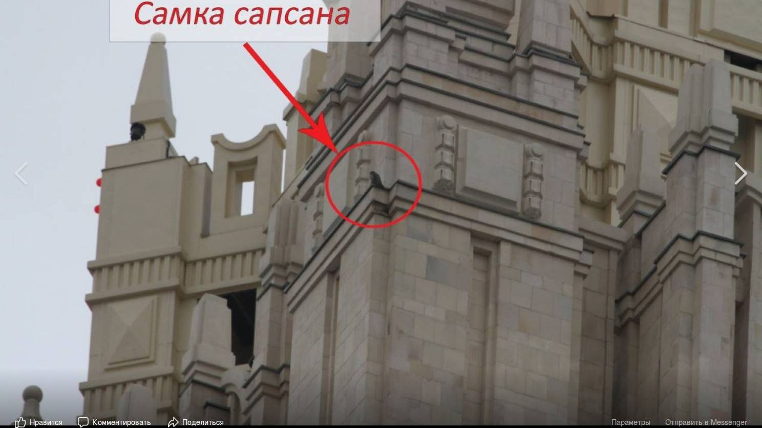 Семейство соколов-сапсанов вернулось на шпиль здания МИД РФ на Смоленской площади, сообщает 30 марта пресс-служба МИД в своем Facebook.