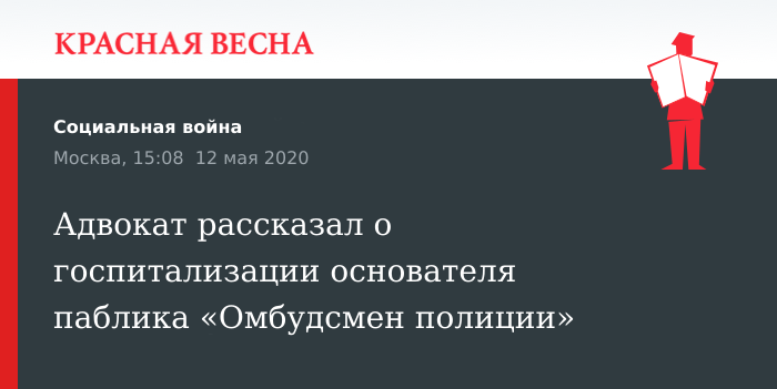 Адвокат рассказал о госпитализации основателя паблика «Омбудсмен полиции»