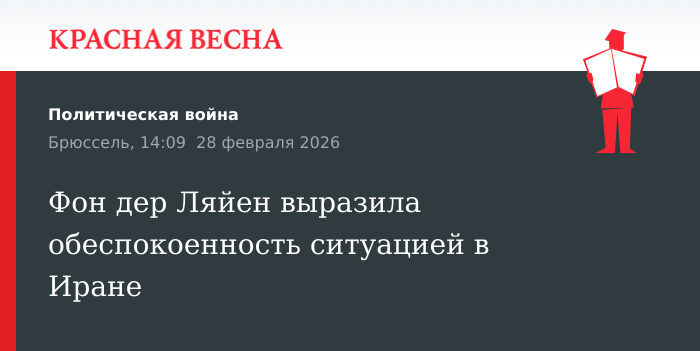 Развитие событий в Иране вызывает огромную озабоченность, заявила глава Еврокомиссии Урсула фон дер Ляйен 28 февраля в своем аккаунте в соцсети X.