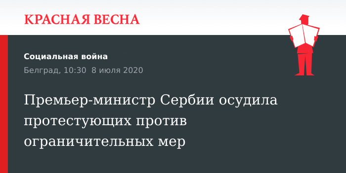 Премьер-министр Сербии осудила протестующих против ограничительных мер