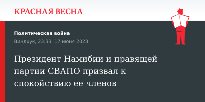Президент Намибии и правящей партии СВАПО призвал к спокойствию ее членов