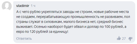 В комментариях указали, что отечественные экономисты не правильно понимают, что такое укрепление национальной валюты. Укрепление — это когда за рубль дают 65 долларов, а не наоборот, подчеркнули пользователи Сети.