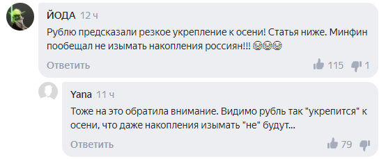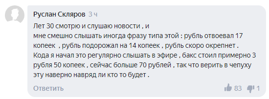 Комментаторы скептически восприняли прогнозы. В комментариях напомнили, что разговоры об укреплении национальной валюты идут уже 30 лет, и начались они, когда рубль стоил в двадцать раз дороже, чем сейчас.
