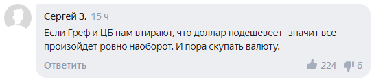 Пользователи Сети прокомментировали прогнозы экономистов Альфа-банка и главы Сбербанка Германа Грефа, которые заявляли об укреплении рубля к концу 2020 года. Авторы прогнозов считают, что в этот период цена российской валюты будет на уровне от 60 до 65 рублей за один доллар.