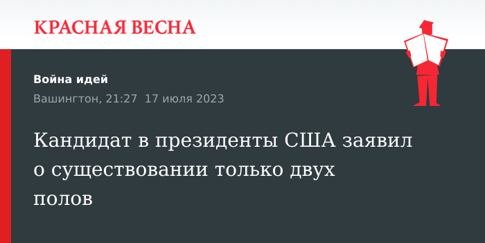 «И я пообещал на самом деле защитить женщин от этого ядовитого расширения определений пола, сказать, что женщины смогут участвовать в спортивных соревнованиях, как того требует закон, что женщины смогут выполнять свои функции, что единственные люди, которые на самом деле способны рожать детей по определению женщины», — продолжил кандидат в президенты.