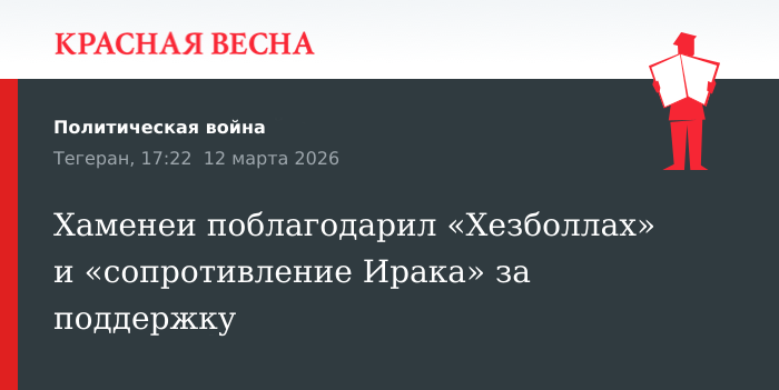 Благодарность ливанскому движению «Хезболлах» и «Исламскому сопротивлению Ирака» выразил верховный лидер Ирана аятолла Моджтаба Хаменеи, заявление 12 марта опубликовано на его сайте.
