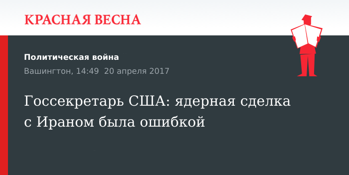 Ошибкой назвал договор с Ираном об атомной программе госсекретарь США Рекс Тиллерсон, 20 апреля, сообщает немецкая телерадиокомпания Deutsche Welle.