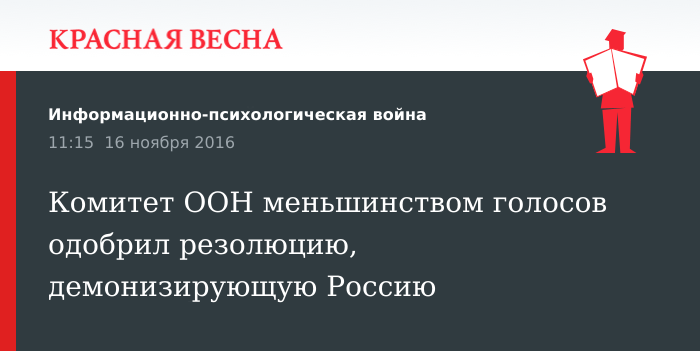 Комитет ООН меньшинством голосов одобрил резолюцию, демонизирующую Россию