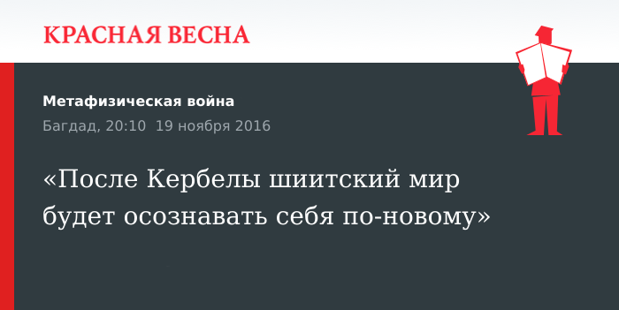 «На первый взгляд, причина скопления миллионов шиитских паломников в иракской Кербеле кажется частной — это нарушенные договоренности между Ираном и Саудовской Аравией по поводу паломничества иранцев в Мекку. Но на деле суть происходящего в Кербеле события в другом. Там, вокруг центральной шиитской святыни, идет сейчас небывалая концентрация всего шиитского мира. Такая концентрация, после которой шиитский мир будет осознавать себя по-новому», — считает Мария Подкопаева.