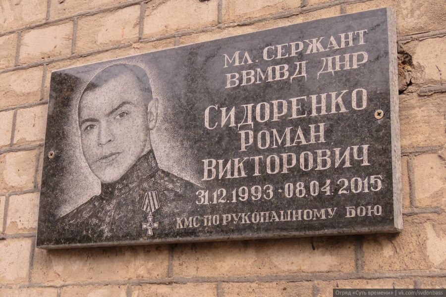 Сержант Внутренних войск МВД ДНР Роман Викторович Сидоренко погиб в ходе минометного обстрела 8 апреля 2015 года, находясь на наблюдательном посту под Ясиноватой. До войны Роман Сидоренко тренировался в спортивном комплексе «Динамо», был кандидатом в мастера спорта по рукопашному бою.