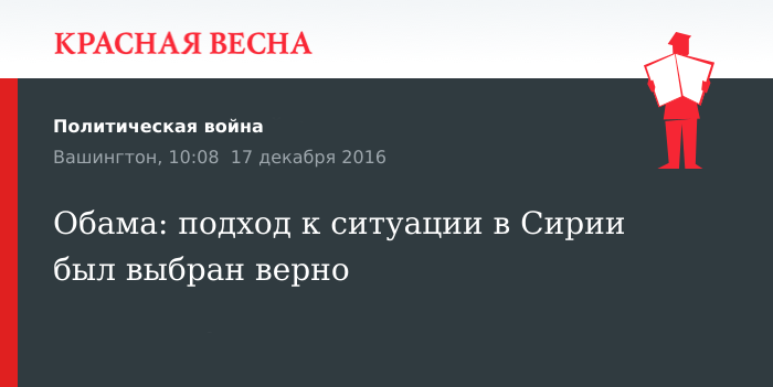 Правильным назвал свой подход к ситуации в Сирии Барак Обама 16 декабря во время своей последней пресс-конференции в качестве президента США, сообщает «Евроньюс».